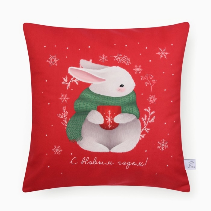 Новый год. Чехол на подушку Этель "Зайчик" 40*40 см, 100 п/э, велюр