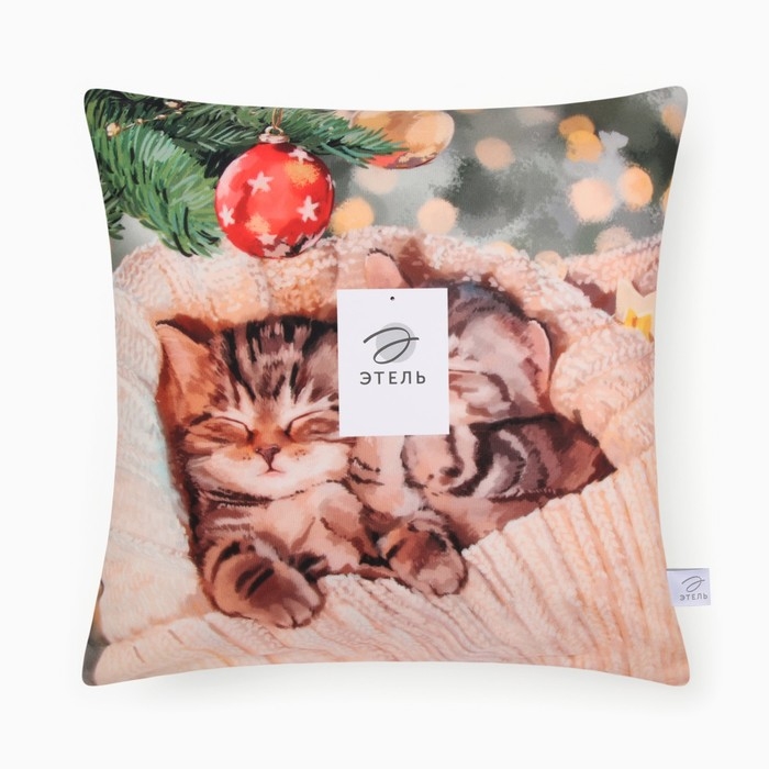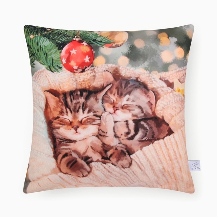 Новый год. Чехол на подушку Этель "Котята" 40*40 см, 100 п/э, велюр