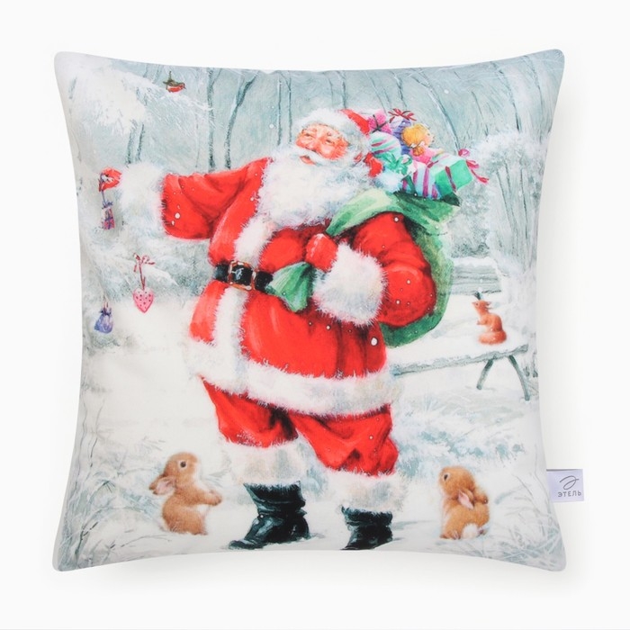 Новый год. Чехол на подушку Этель "Дед Мороз" 40*40 см, 100 п/э, велюр