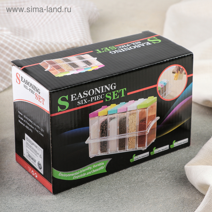 Набор для специй «Компакт», 100 мл, 17×7×10 см, 6 шт, односторонний дозатор, цвет МИКС