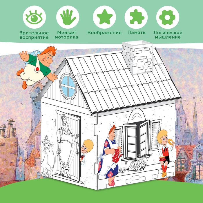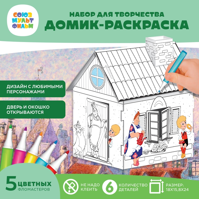 Набор для творчества «Домик-раскраска: Малыш и Карслон», из картона, 6 деталей, 5 фломастеров