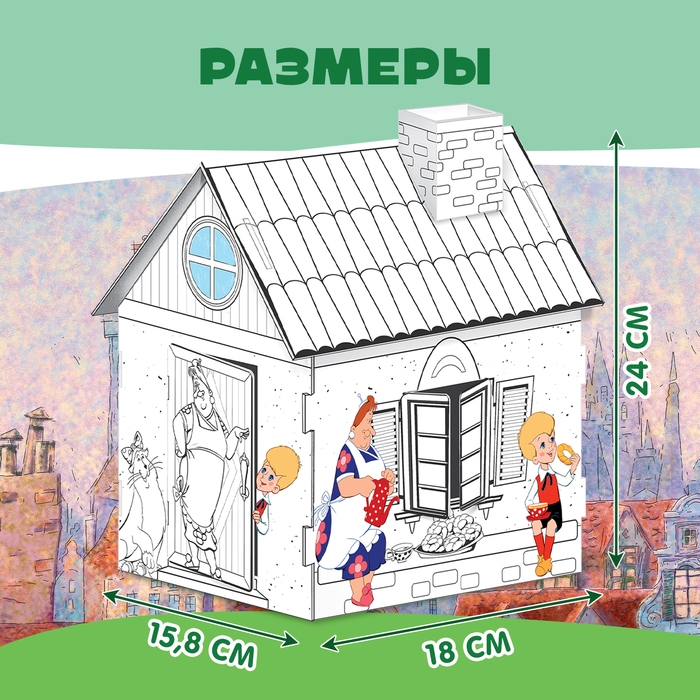 - Размер домика в собранном виде: 15,8 × 18 × 24 см.