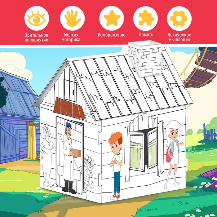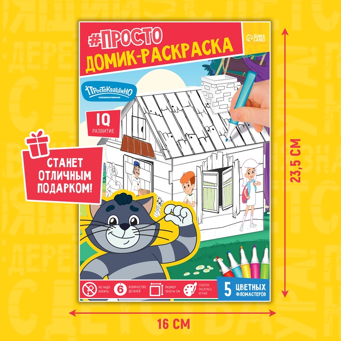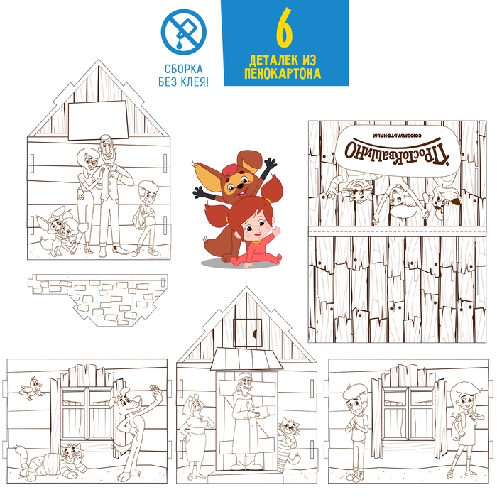 Набор для творчества «Домик-раскраска: Простоквашино», из картона, 6 деталей, 5 фломастеров