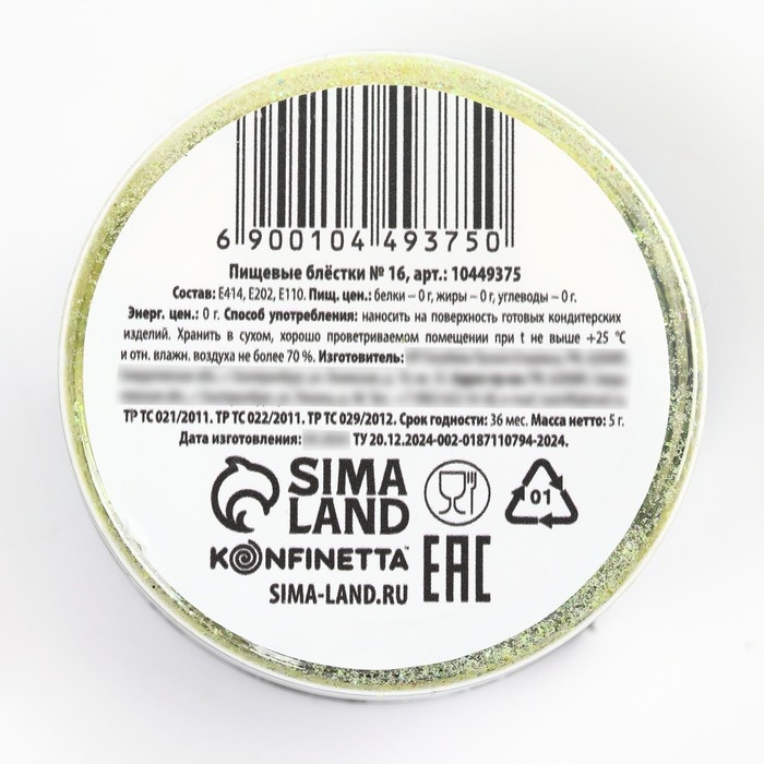 Пищевые блестки крупной фракции лаймовые, для капкейков, тортов и напитков, 5 г.