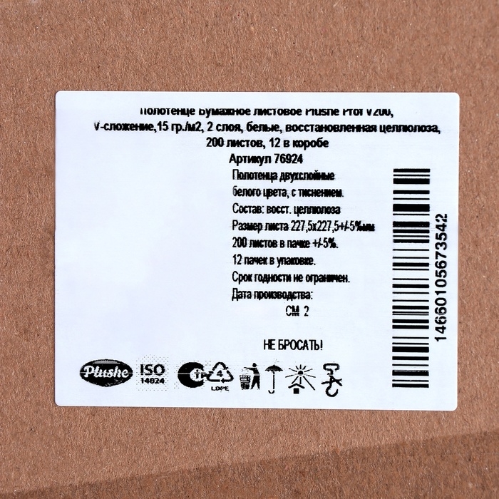 Полотенца бумажные Plushe Professional V-сложения, 15 г/м2, 2 слоя, 200 листов