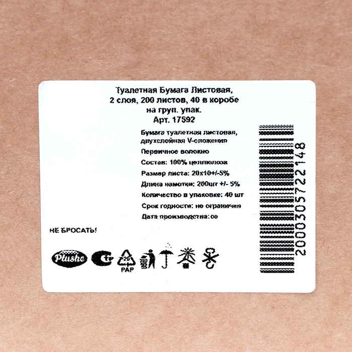 Туалетная бумага листовая предназначена для использования в диспенсерах. Каждый лист имеет 2 слоя