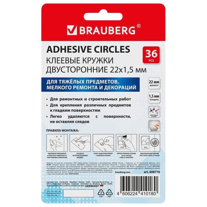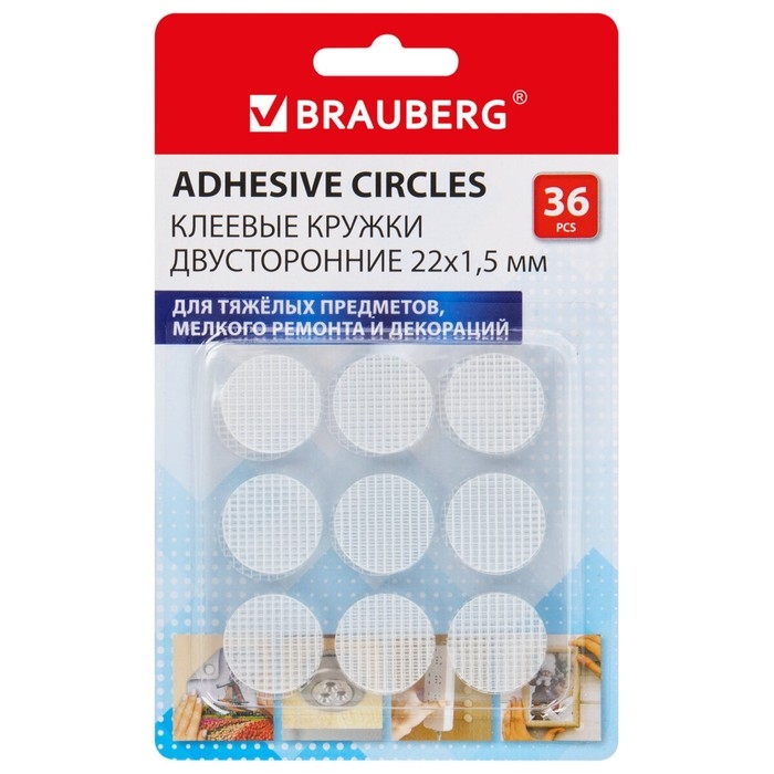 Клеевые кружки двусторонние, диаметр 22 мм, акриловая основа, 36 шт., BRAUBERG