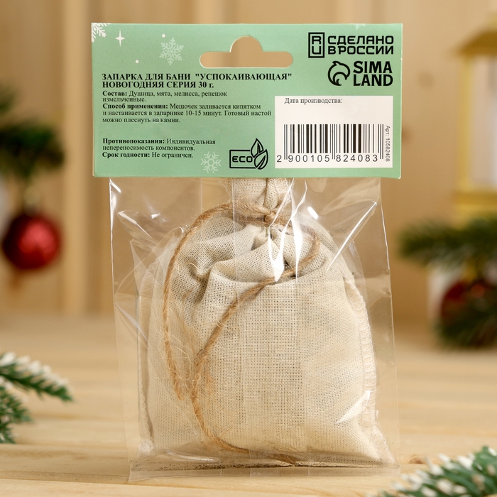 Новый год Запарка для бани "Успокивающая" душица, мята, мелисса, 30 г