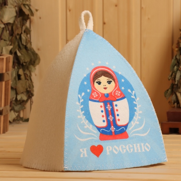 Шапка для бани с принтом "Я люблю Россию", классическая