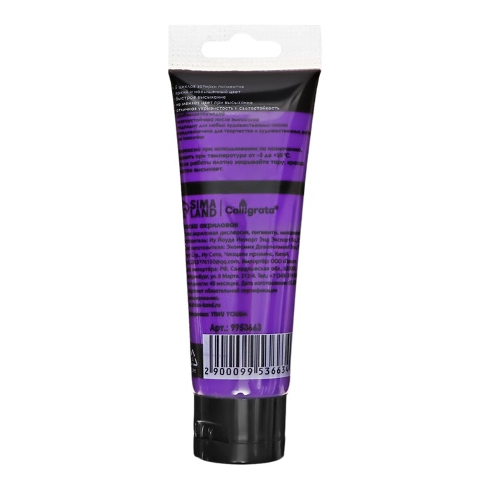 Краска акриловая матовая в тубе 75мл CALLIGRATA, КМ013, Фиолетовая темная, пантон 2627С