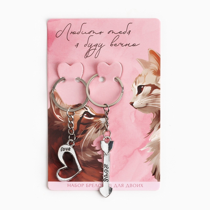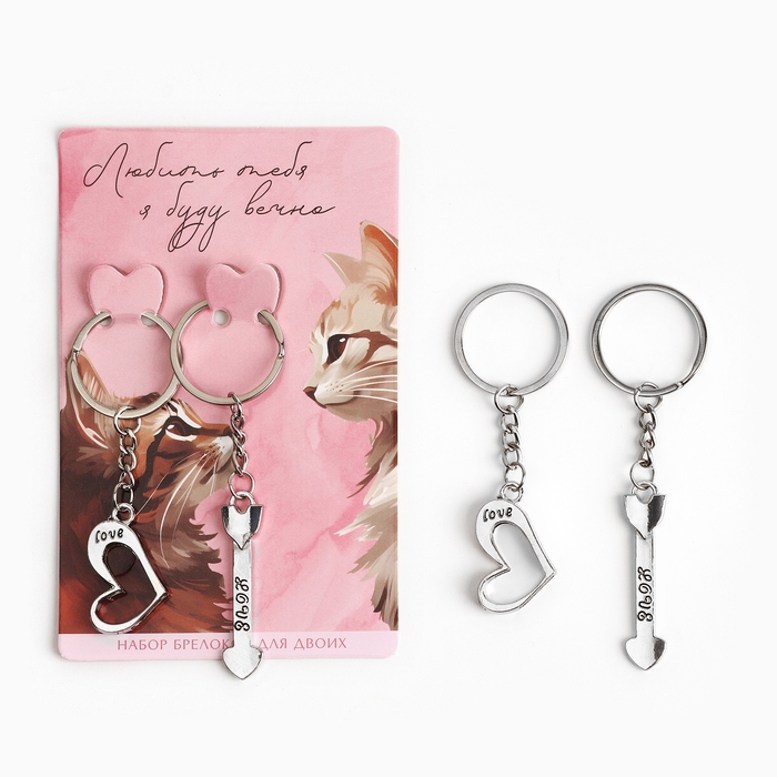 Брелок для ключей парный, «Любить тебя я буду вечно», металл, 9 х 14 см