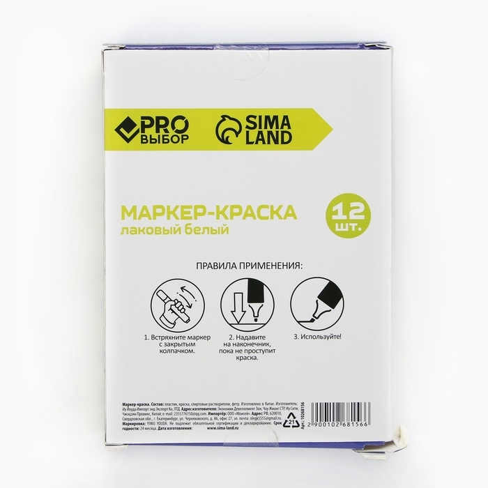 Маркер-краска, лаковый. Наконечник пулевидный, 4 мм, белый PRO Выбор