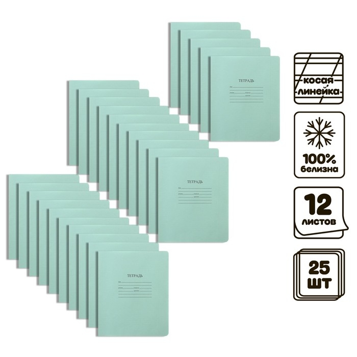 Комплект тетрадей из 25 штук, 12 листов в косую линию КФОБ "Зелёная обложка", с алфавитом, 60 г/м2, блок офсет, белизна 100%