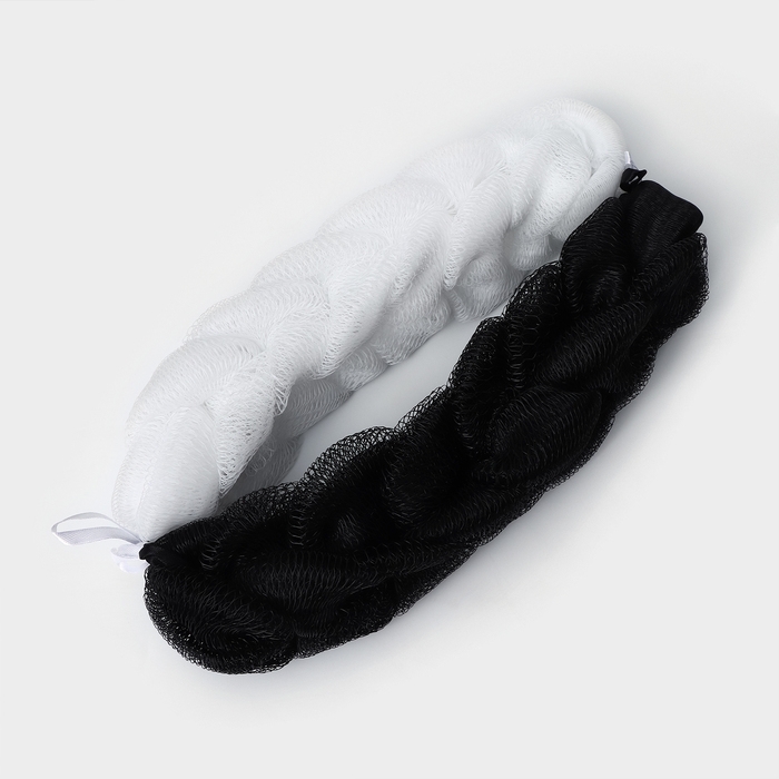 Набор мочалок для тела CUPELLIA SPA: 2 косы по 70 гр, цвета черный и белый
