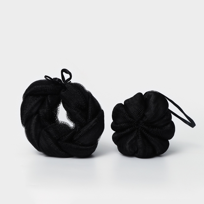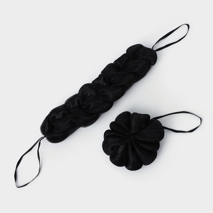 Набор мочалок для тела CUPELLIA SPA: Коса 70 гр + Ракушка 46 гр, цвет черный