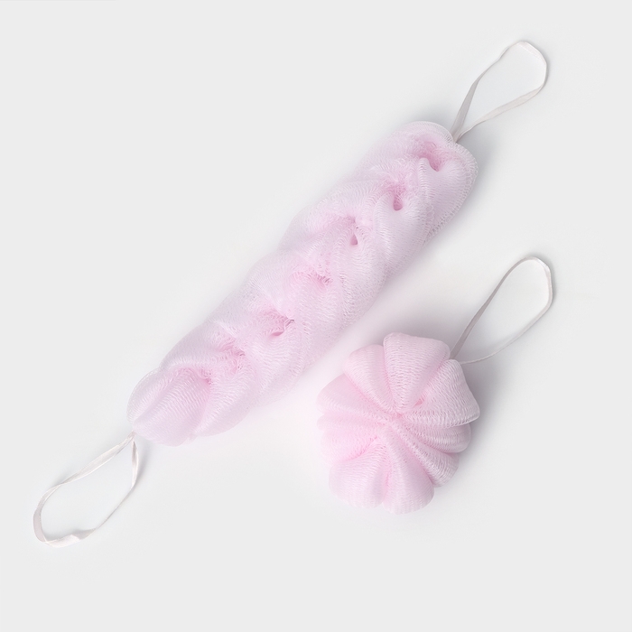 Набор мочалок для тела CUPELLIA SPA: Коса 70 гр + Ракушка 50 гр, цвет розовый