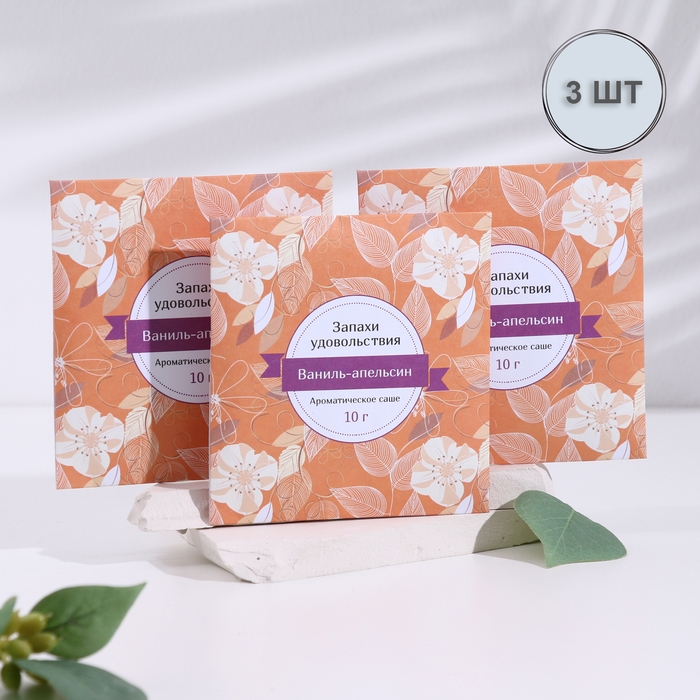 Саше ароматическое "Запахи удовольствия", набор 3 шт, ваниль-апельсин, вес 10г, 10х10,5см