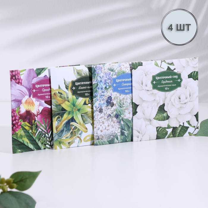 Саше ароматическое "Цветочный сад Ассорти ароматов", набор 4в1, вес 10г, размер 10х10,5см