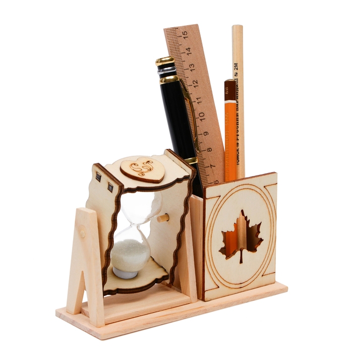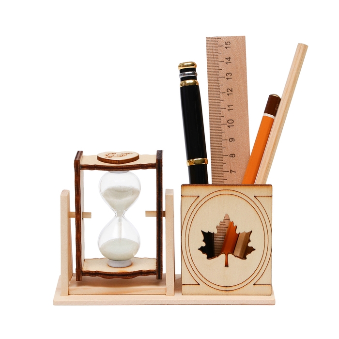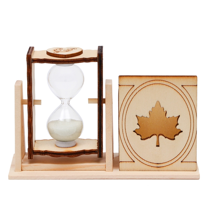 Песочные часы "Кленовый лист", сувенирные, с карандашницей, 10 х 13.5 см, белые