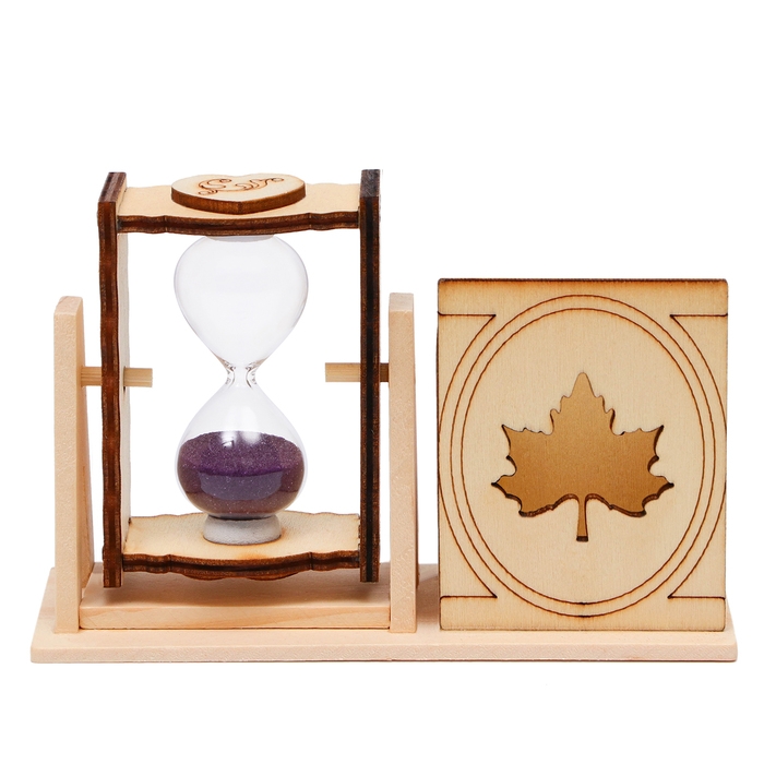 Песочные часы "Кленовый лист", сувенирные, с карандашницей, 10 х 13.5 см, фиолетовые