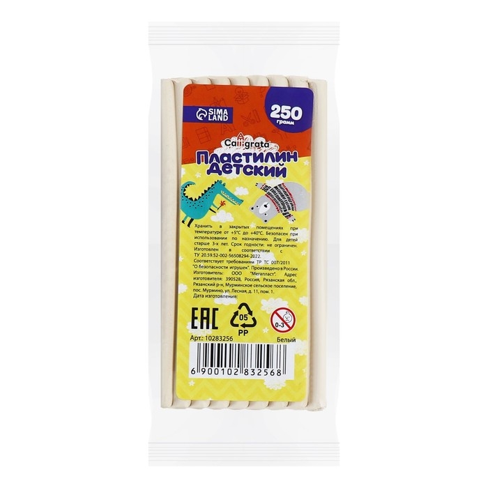 Пластилин 250г Calligrata Классический, белый