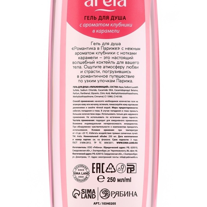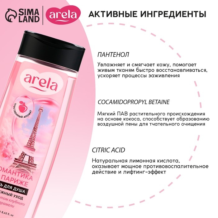 Гель для душа «Романтика в Париже», 250 мл, аромат клубники в карамели, ARELA
