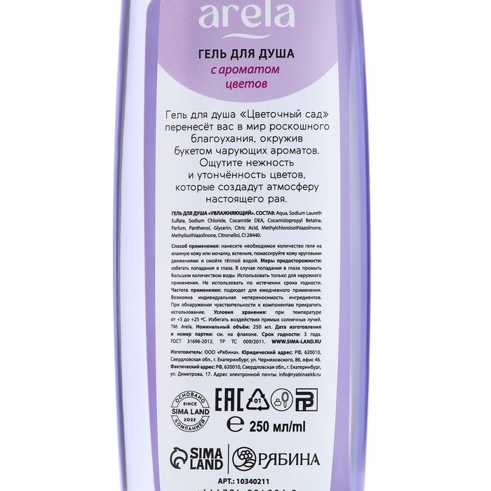 Гель для душа «Цветочный сад», 250 мл, аромат чарующего букета, ARELA