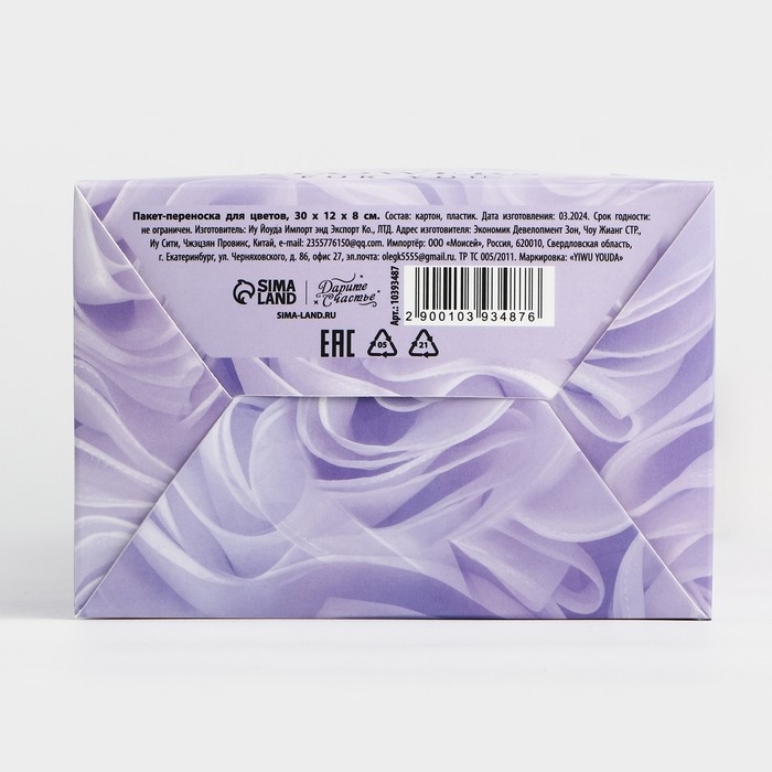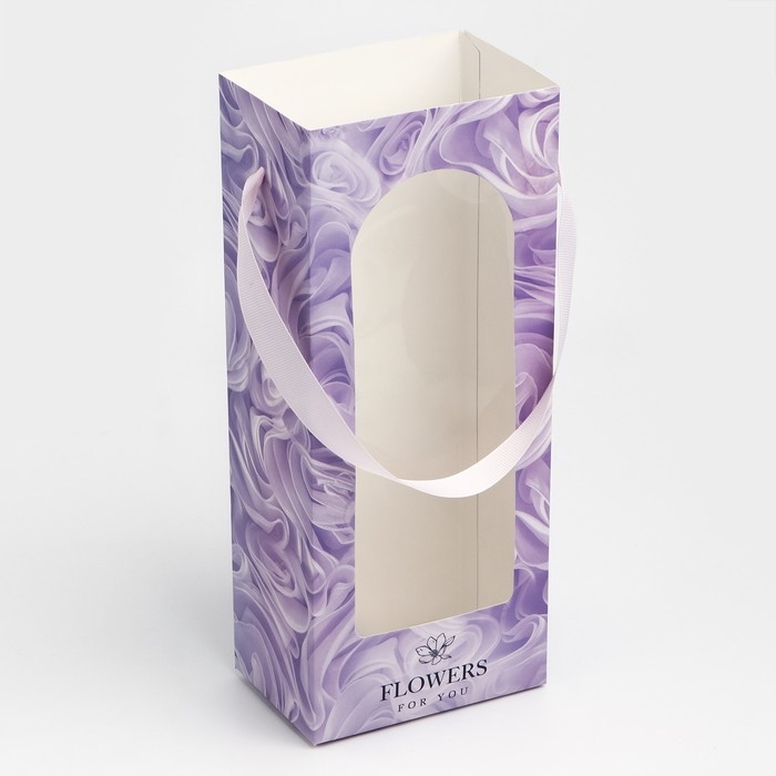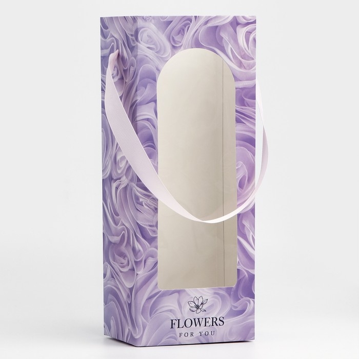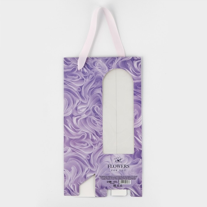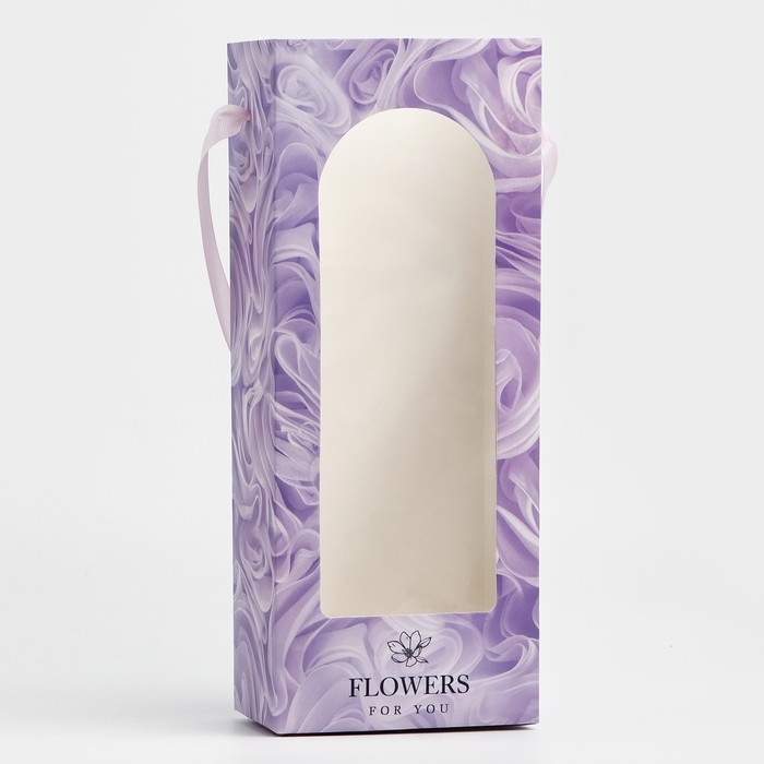Пакет-переноска для цветов с пластиковым окном, Flowers, сиреневая, 30 х 12 х 8 см