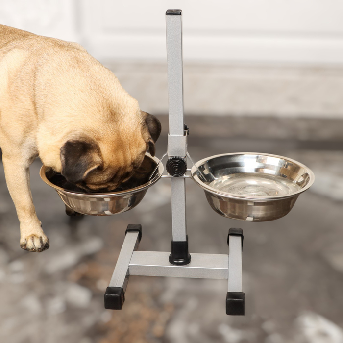 Подставка с мисками, 2 х 700 мл, высота 40 см, разборная с верхним фиксатором, хром