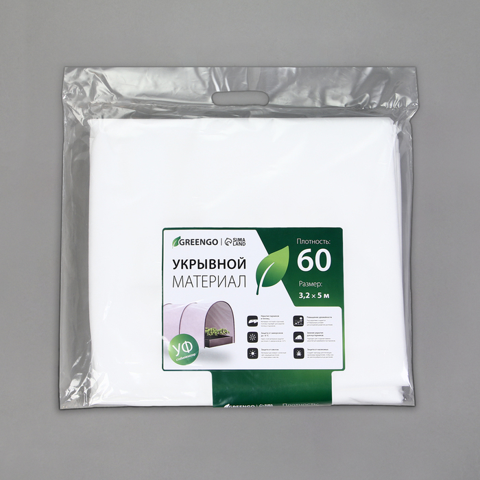 Материал укрывной, 5 × 3,2 м, плотность 60 г/м², спанбонд с УФ-стабилизатором, белый, Greengo, Эконом 30%