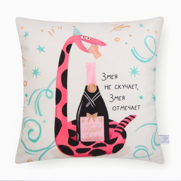 Новый год. Символ года. Змея. Чехол на подушку Этель «Настроение игривое» 40х40 см, велюр