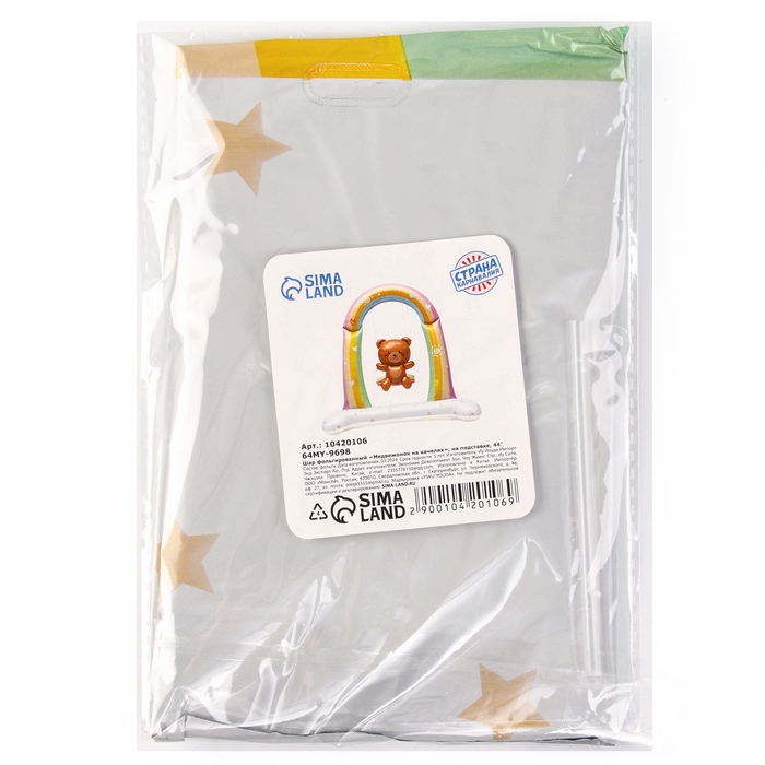 Шар фольгированный 44" «Медвежонок на качелях», на подставке, под воздух
