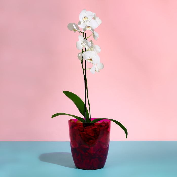 Горшок для орхидей, 2 л, 14,8 × 16,2 см, круглый, пластик, прозрачно-малиновый