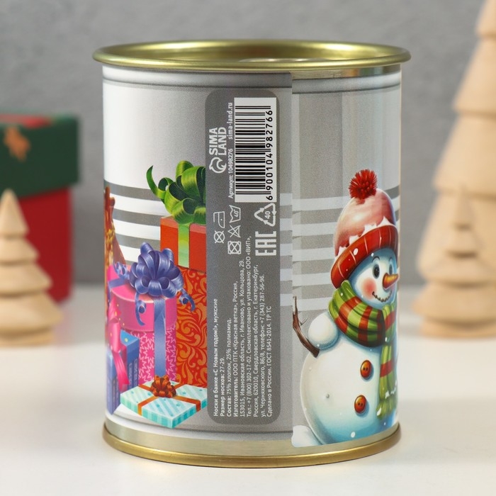 Носки в банке "С новым годом" подарки (внутри носки мужские, цвет чёрный)