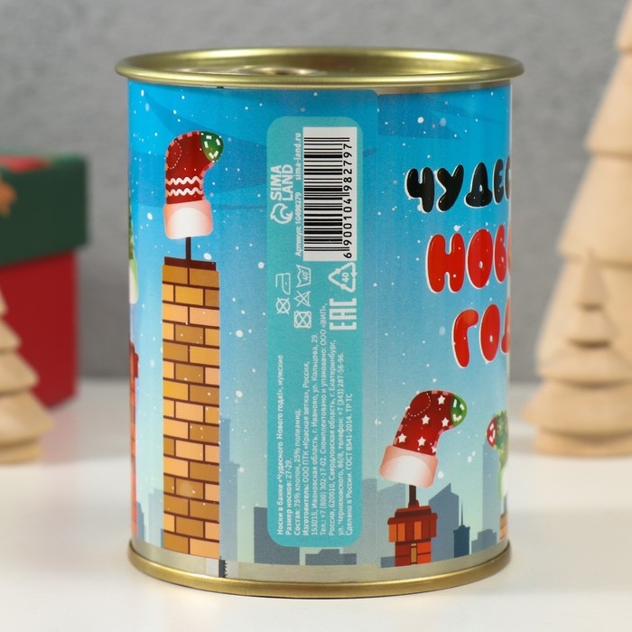 Носки в банке "Чудесного нового года" (внутри носки мужские, цвет чёрный)