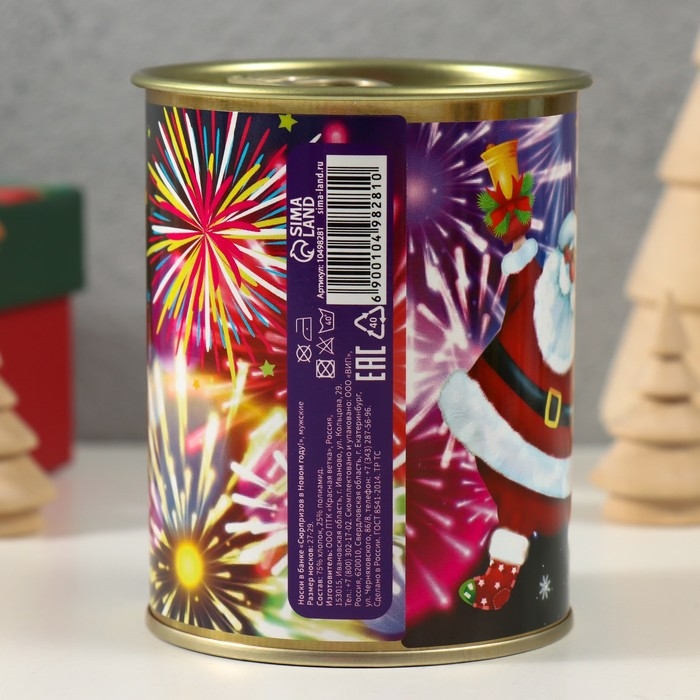 Носки в банке "Сюрпризов в новом году" (внутри носки мужские, цвет чёрный)