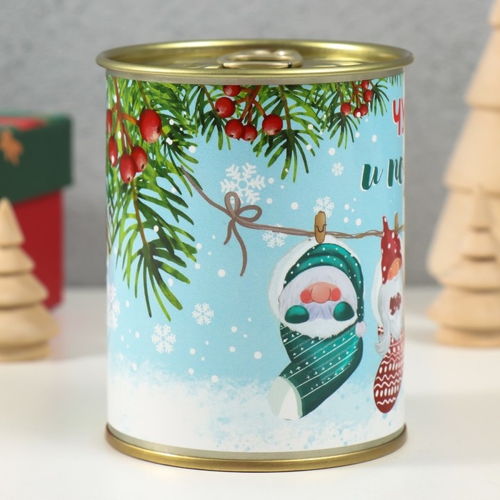Носки в банке "Чудес и подарков" (внутри носки мужские, цвет чёрный)