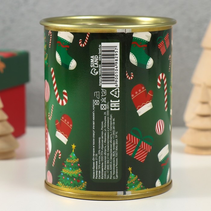 Носки в банке "От печали и тоски спасут вот эти носки" (внутри носки мужские, цвет чёрный)
