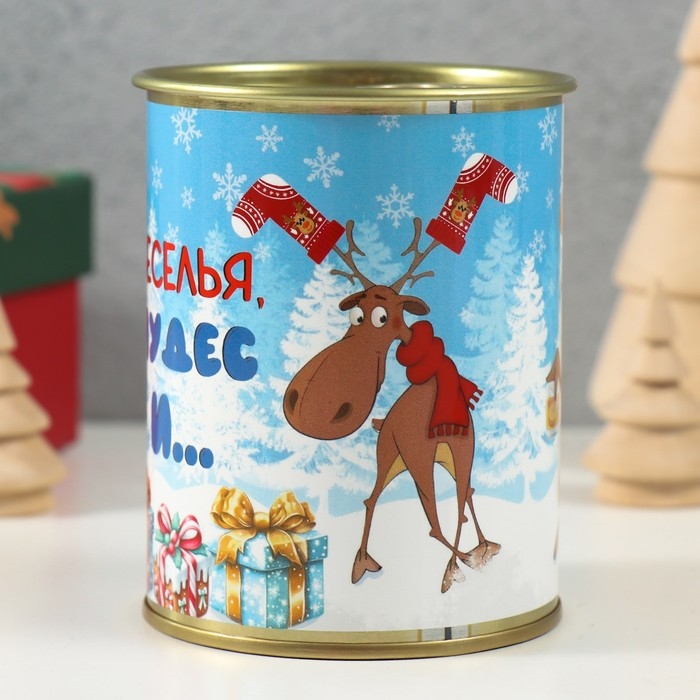 Носки в банке "Веселья, чудес и ..." (внутри носки мужские, цвет чёрный)