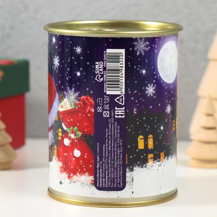 Носки в банке "Жди чудо" (внутри носки мужские, цвет чёрный)