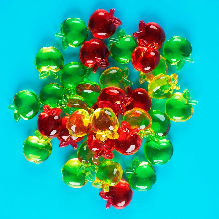 В комплект входят 36 фигурок разных цветов. Размер одного яблочка: 2 × 0,8 × 2,5 см.