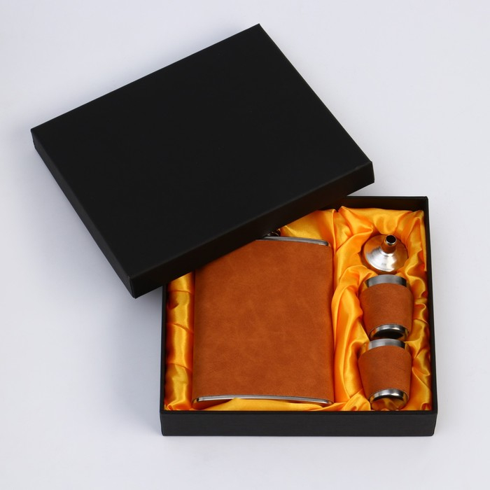 Подарочный набор "Майкл" 4 в 1: фляжка 240 мл, воронка, 2 рюмки, коричневый, 15 х 17 см