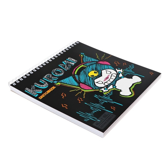 Скетчбук 190х190мм, 48 листов на гребне Kuromi, твердая обложка, блок 160г/м2
