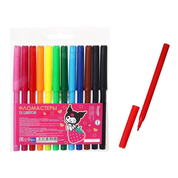 Фломастеры 12 цветов Kuromi, вентилируемый колпачок, европодвес