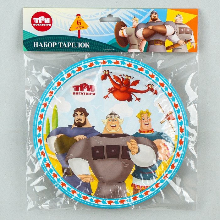 Набор бумажных тарелок, Три Богатыря, d=18 см, набор 6 шт.