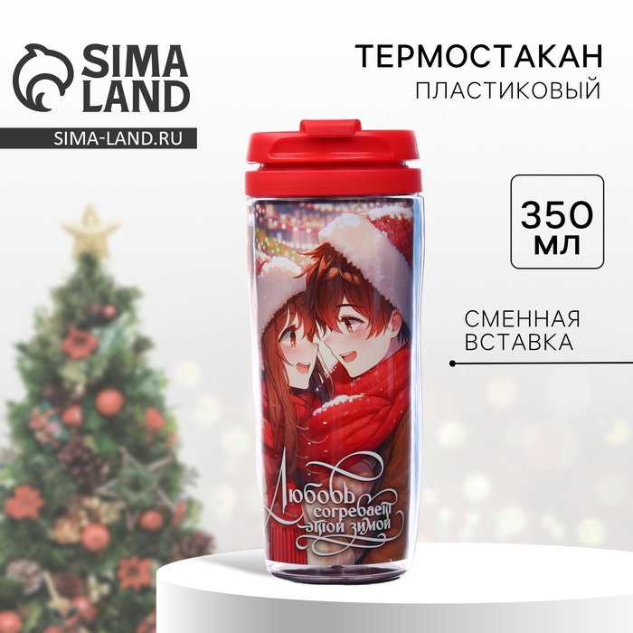 Новый год. Термостакан со вставкой новогодний «Любовь согревает», 350 мл