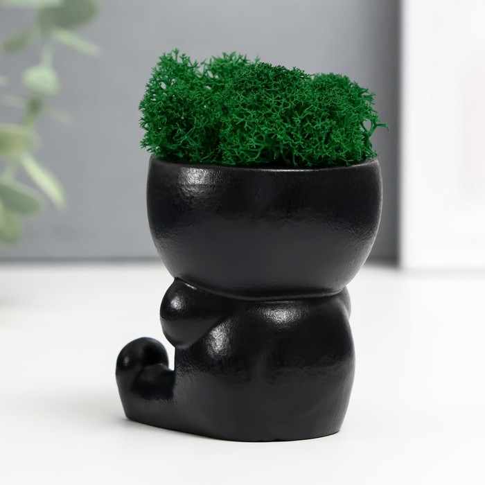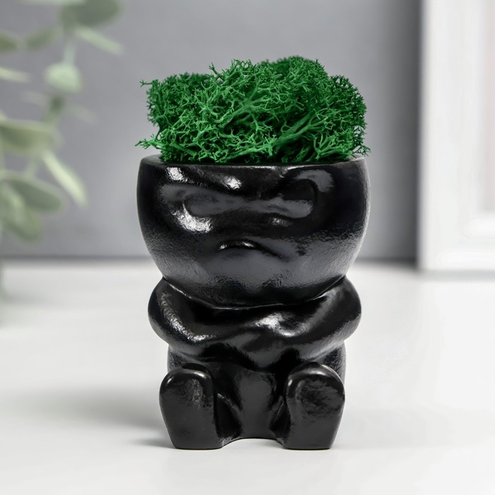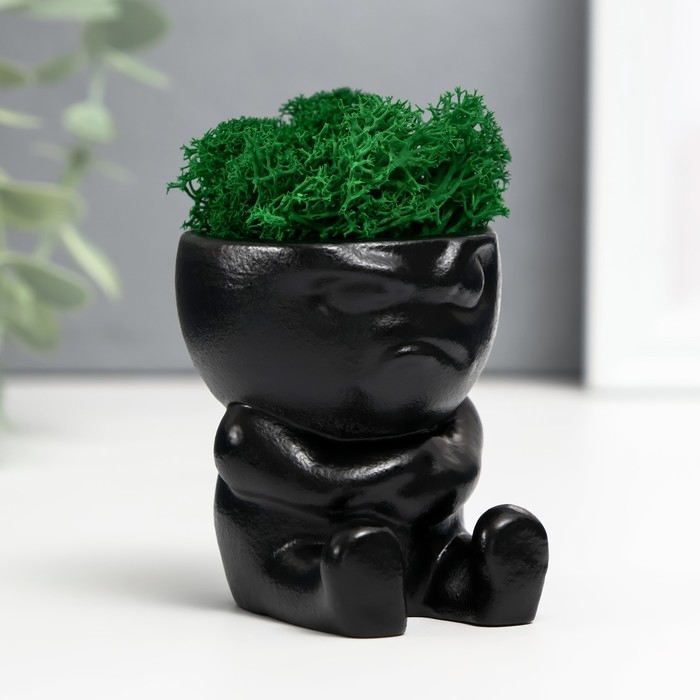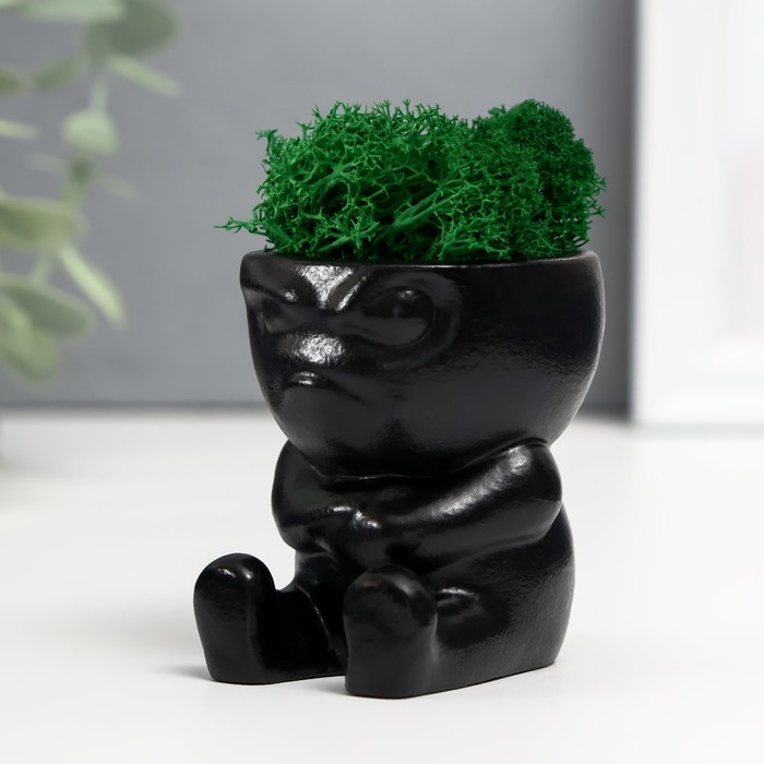 Кашпо бетонное "Мистер Зло" со мхом 7*6см черный (мох зеленый стабилизированный)