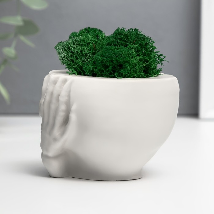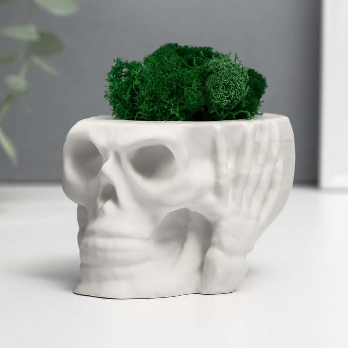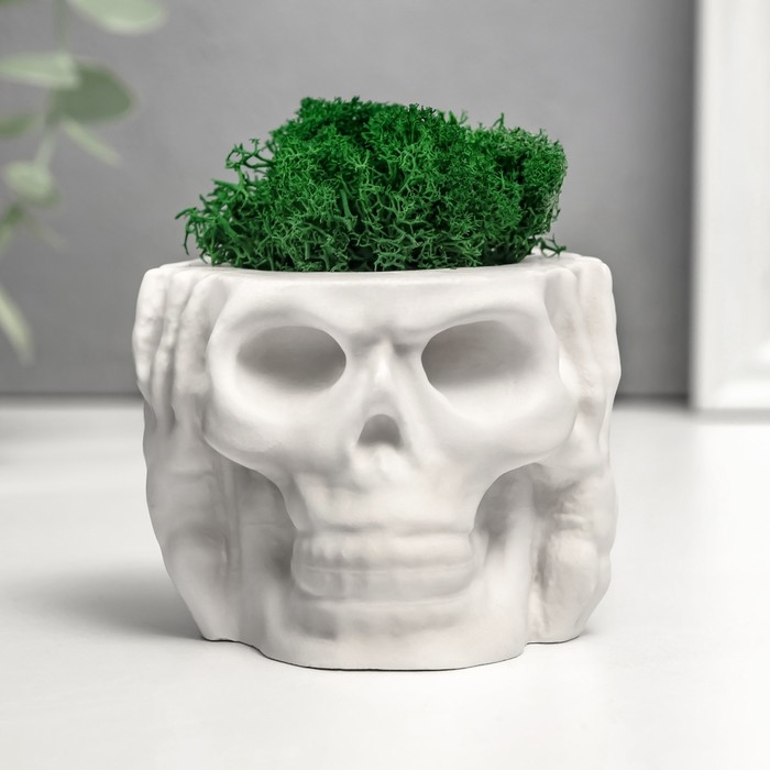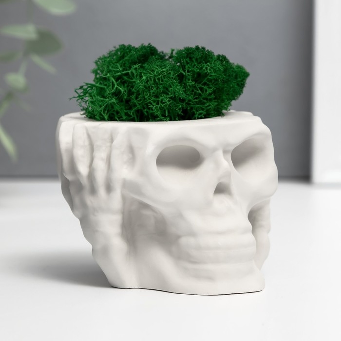 Кашпо бетонное "Череп Тишина" со мхом 6,5х10 см белый (мох зеленый стабилизированный)