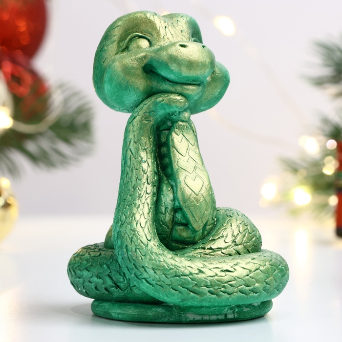 Новый год. Символ 2025. Фигура "Змея Полоз" светло-зеленая, 6х5см