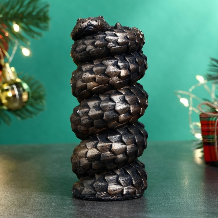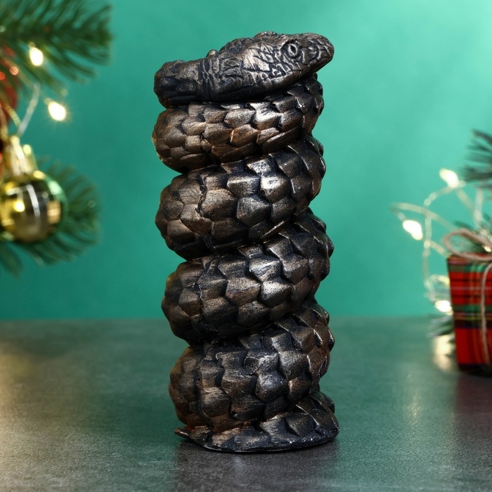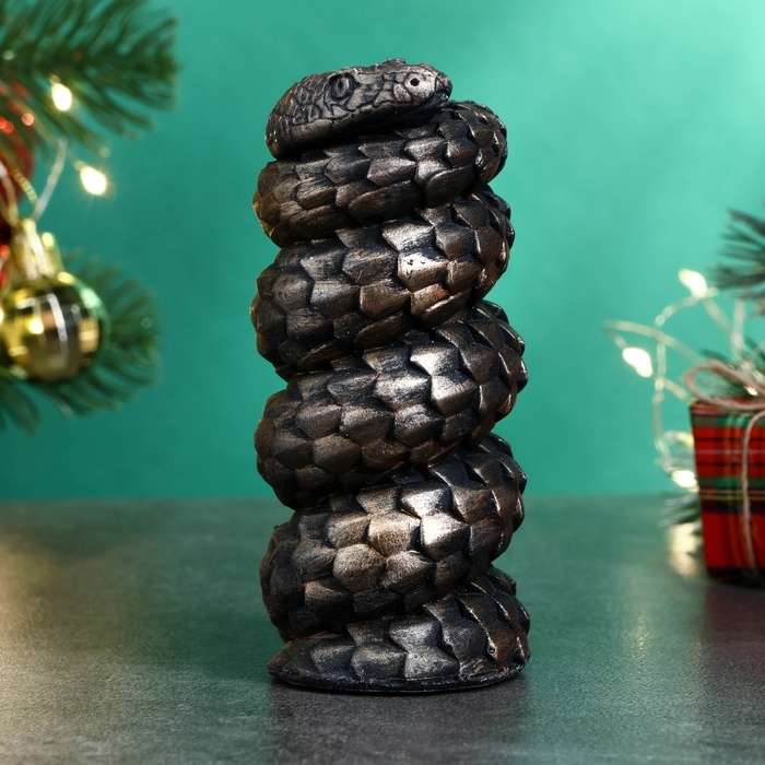 Новый год. Символ 2025. Фигура "Змея витая" черная с позолотой, 10х5см
